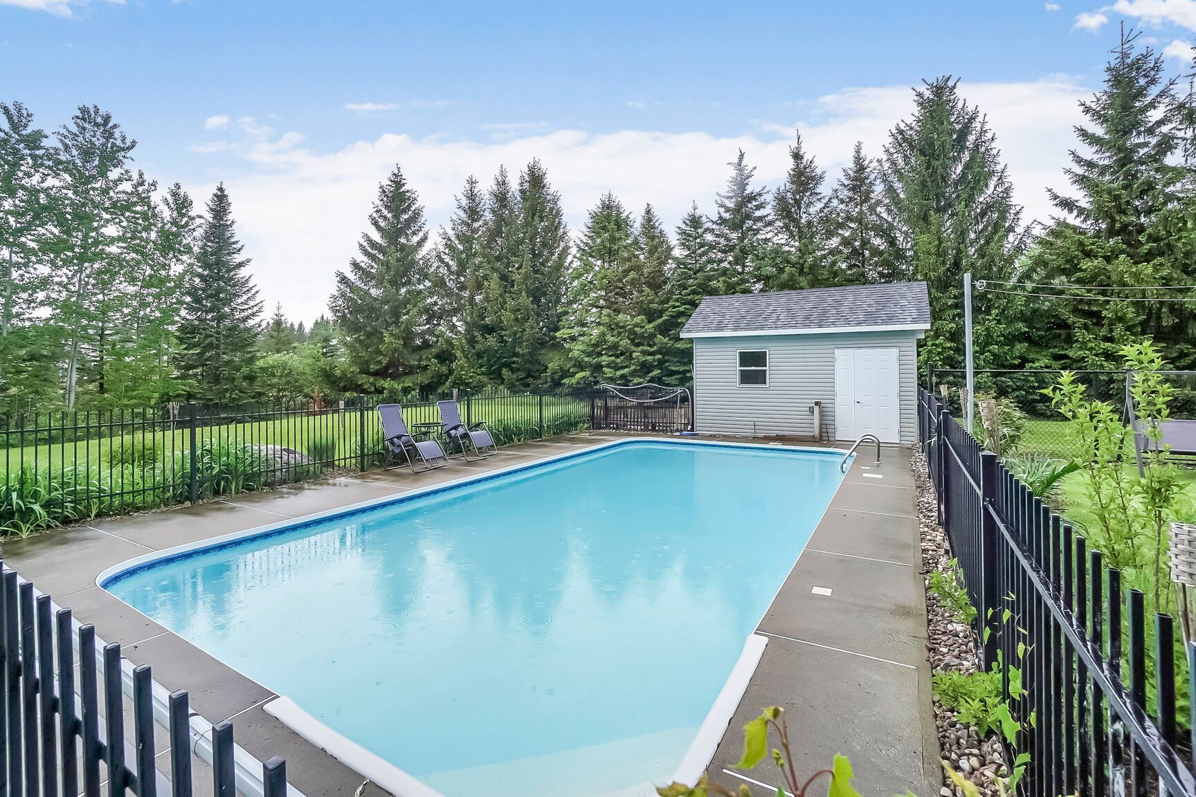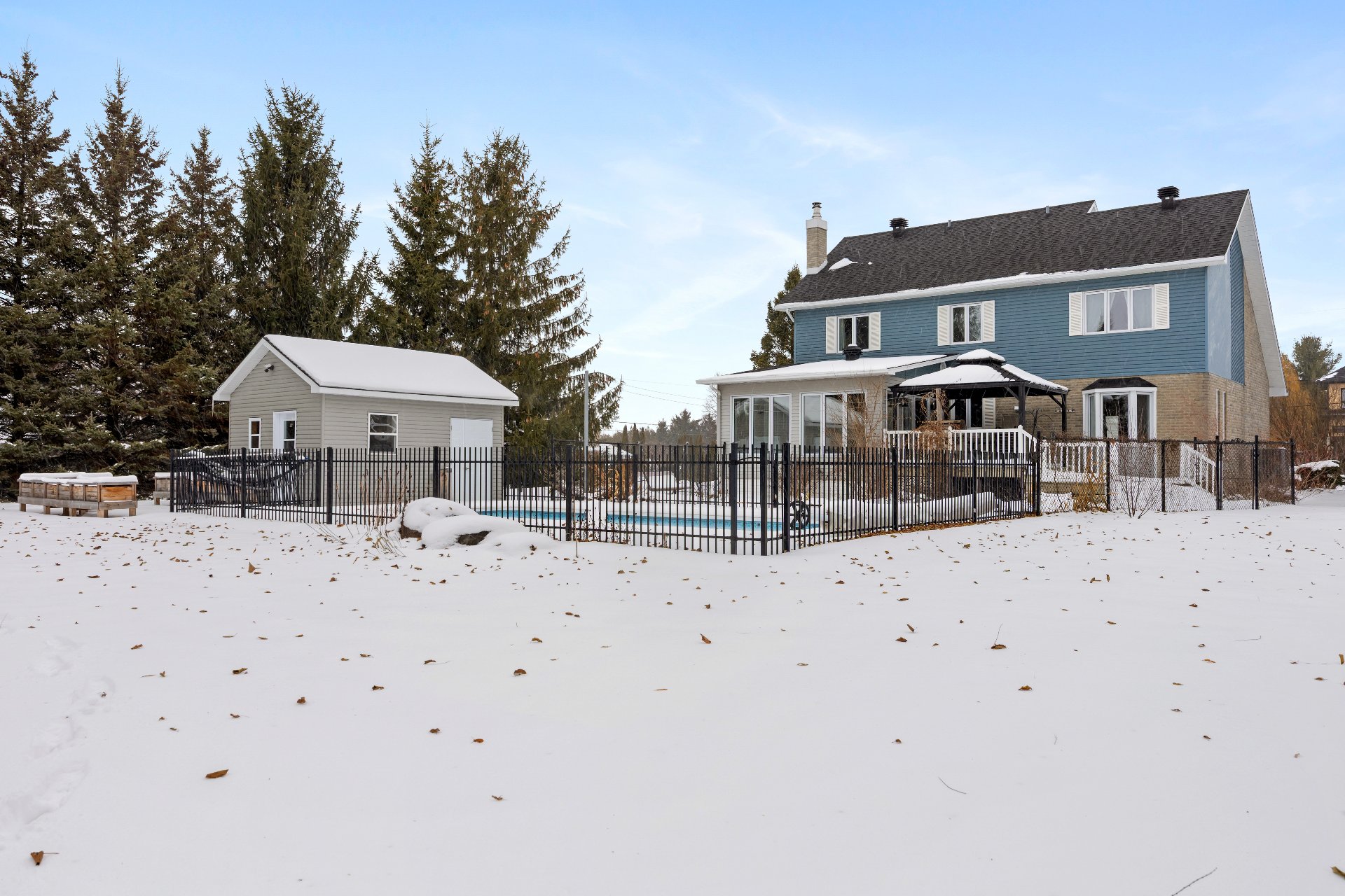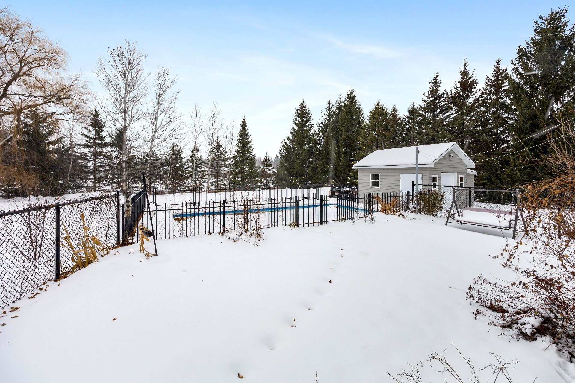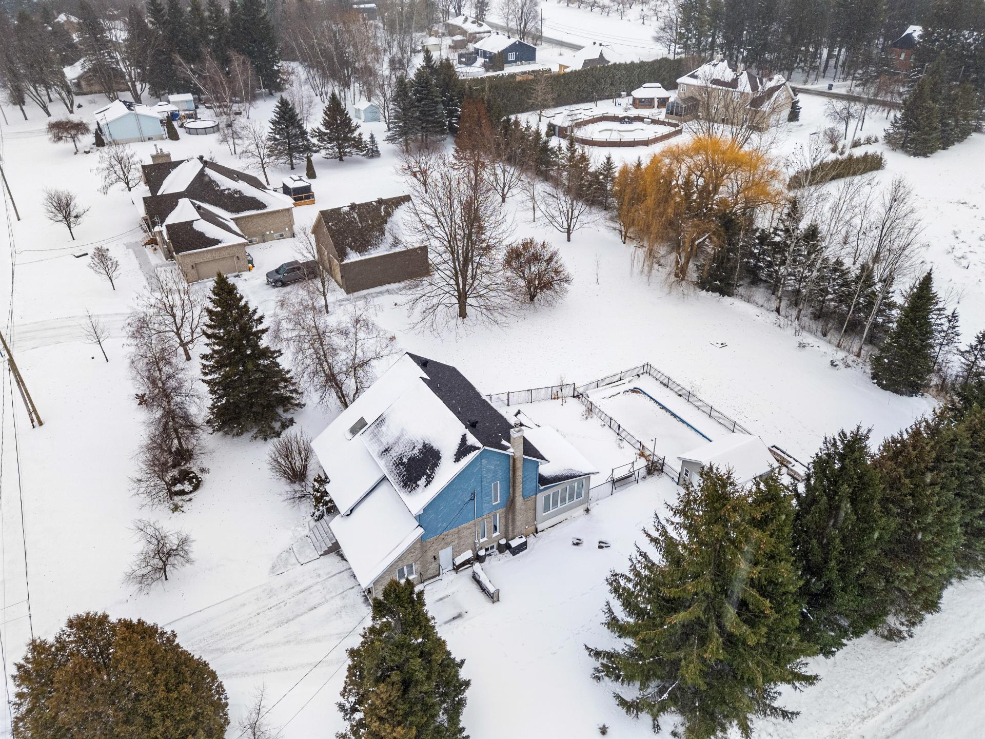 Magnificent property boasting an impressive cathedral ceiling that creates a sense of spaciousness and grandeur from the moment you enter. Bathed in natural light thanks to its abundant windows, it will charm you with its warm and inviting atmosphere. Situated on a large lot of over 37,000 sq ft, it offers remarkable privacy with distant neighbors, all within a peaceful and sought-after area. Outside, fully enjoy the warmer months with an in-ground pool, perfect for relaxing moments. An ideal setting for those seeking tranquility, space, and quality of life, while remaining close to amenities!
