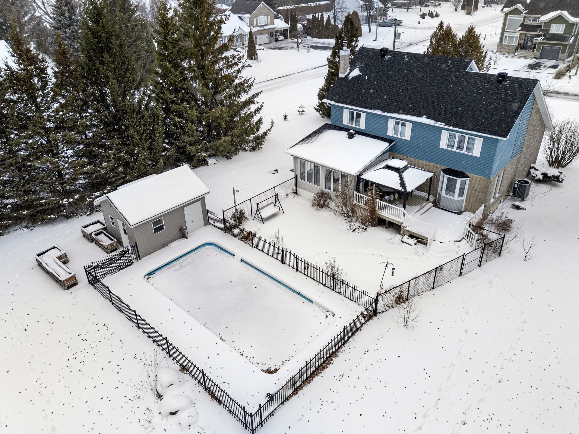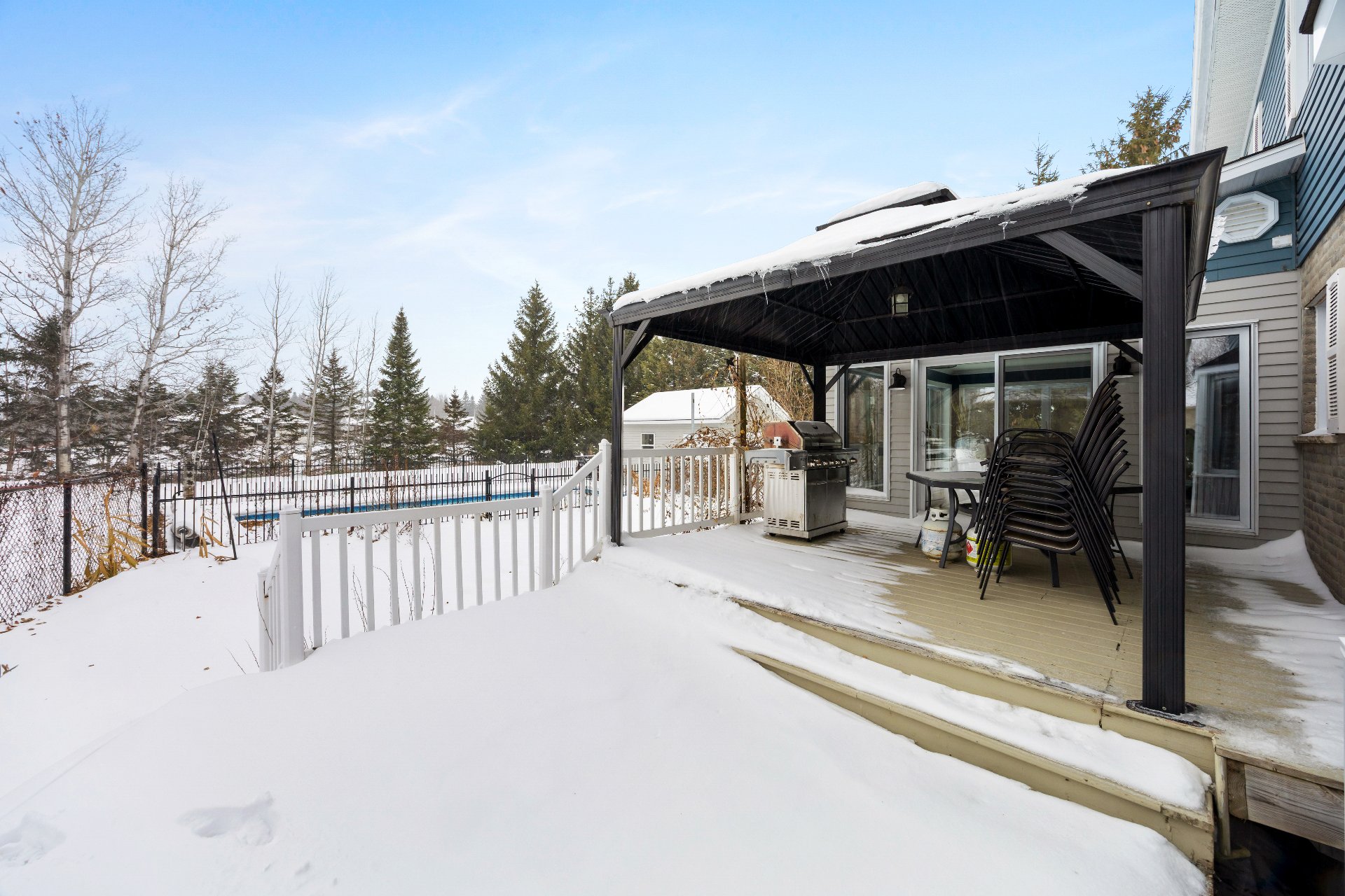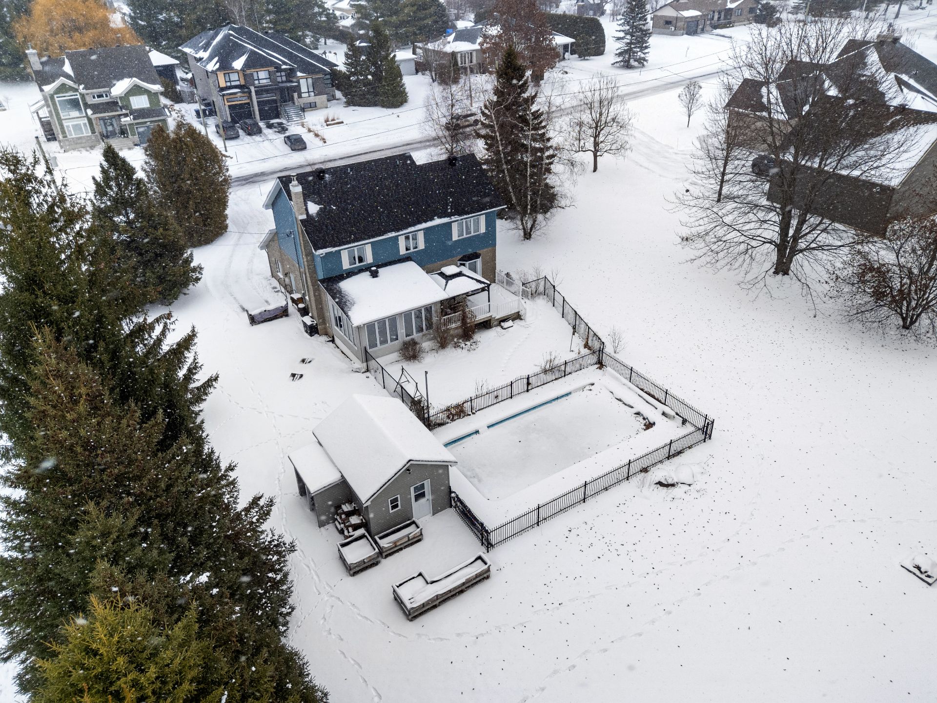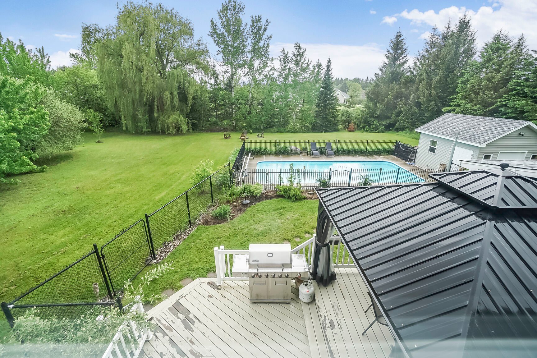 Magnificent property boasting an impressive cathedral ceiling that creates a sense of spaciousness and grandeur from the moment you enter. Bathed in natural light thanks to its abundant windows, it will charm you with its warm and inviting atmosphere. Situated on a large lot of over 37,000 sq ft, it offers remarkable privacy with distant neighbors, all within a peaceful and sought-after area. Outside, fully enjoy the warmer months with an in-ground pool, perfect for relaxing moments. An ideal setting for those seeking tranquility, space, and quality of life, while remaining close to amenities!
