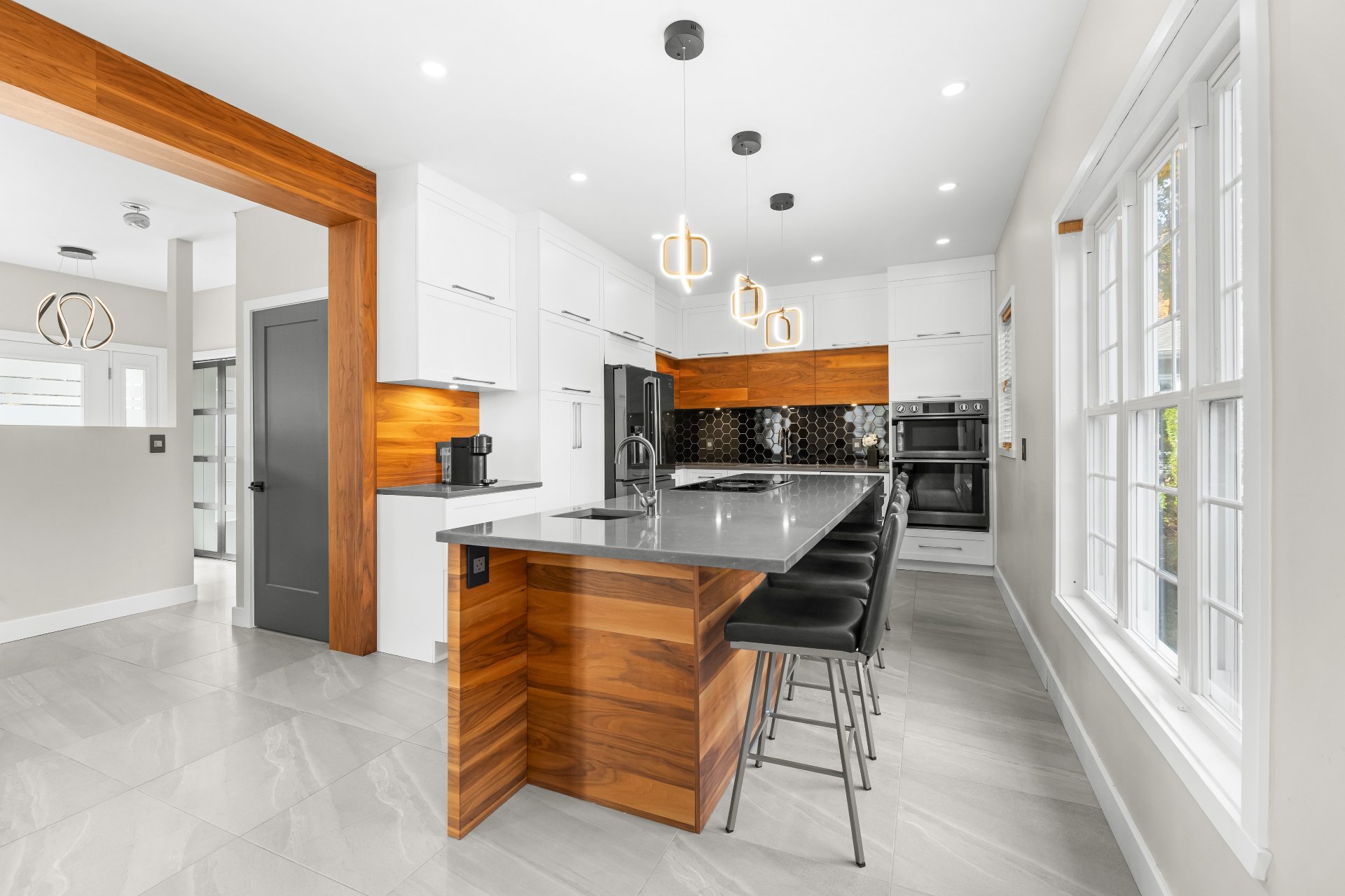 Inclus | Tous les électroménagers de la cuisine + broyeur alimentaire. Les luminaires. Les stores. Aspirateur central et les accessoires. |