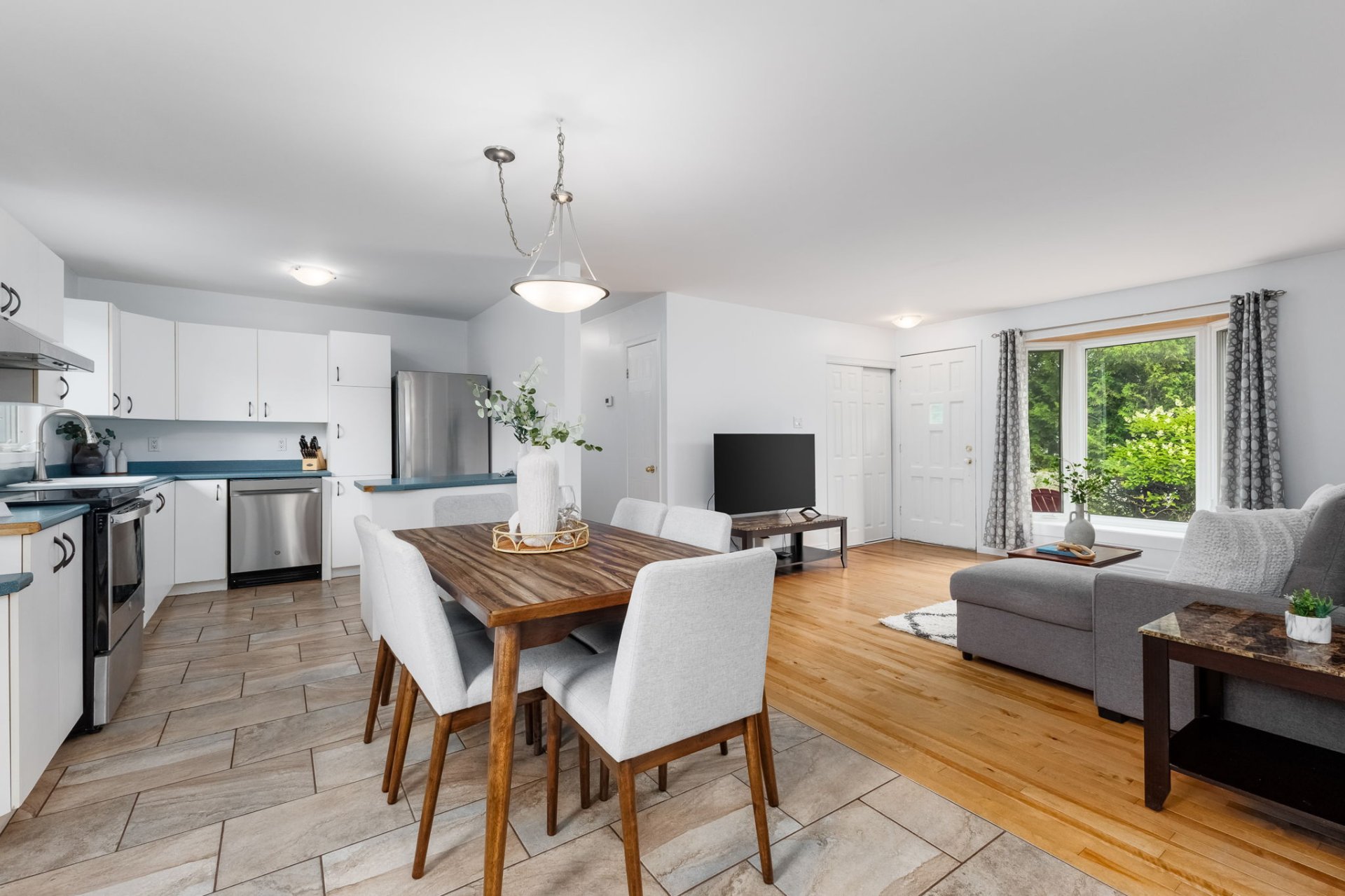 propose un espace de vie convivial ouvert sur l'extérieur.