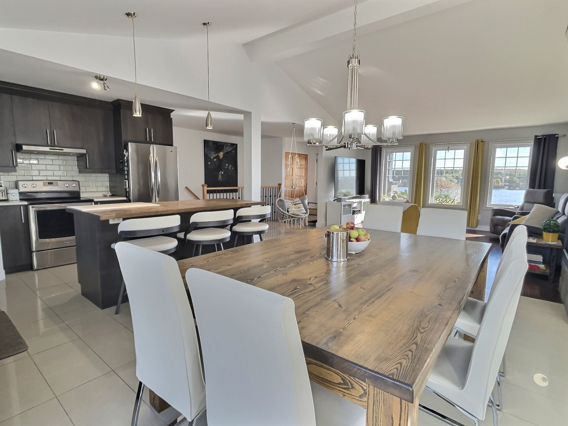 Inclus | 3 bacs (poubelle, composte, recyclage), luminaires fixes, lave-vaisselle, poêle, réfrigérateur, laveuse, sécheuse, set de chambre de la chambre des maitres, système de rangement dans l'entrée, foyer électrique, tapis roulant, pôle à rideaux du salon, aspirateur central et ses accessoires, 3 bancs d'ilot, soucoupe Shaw Direct |