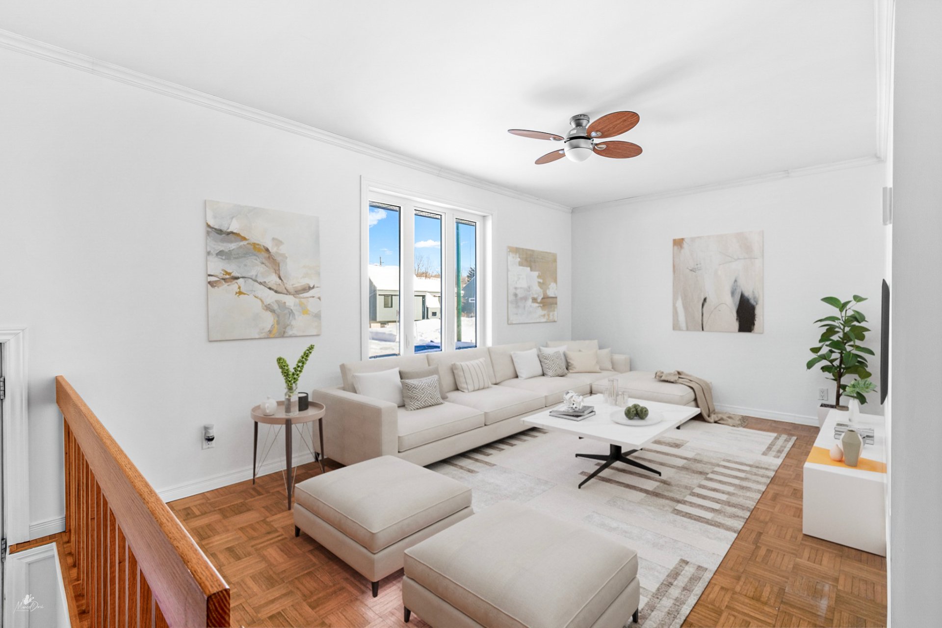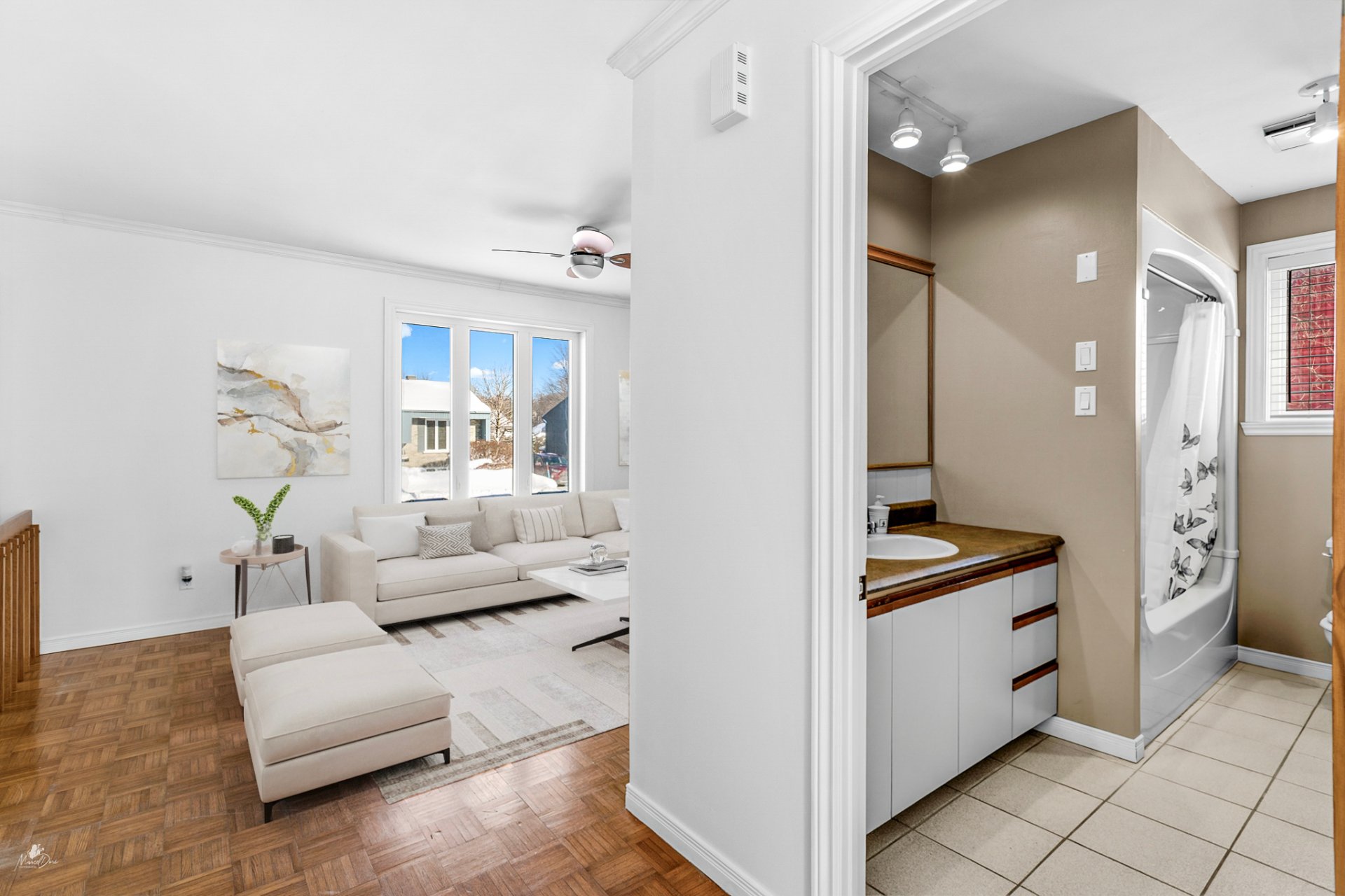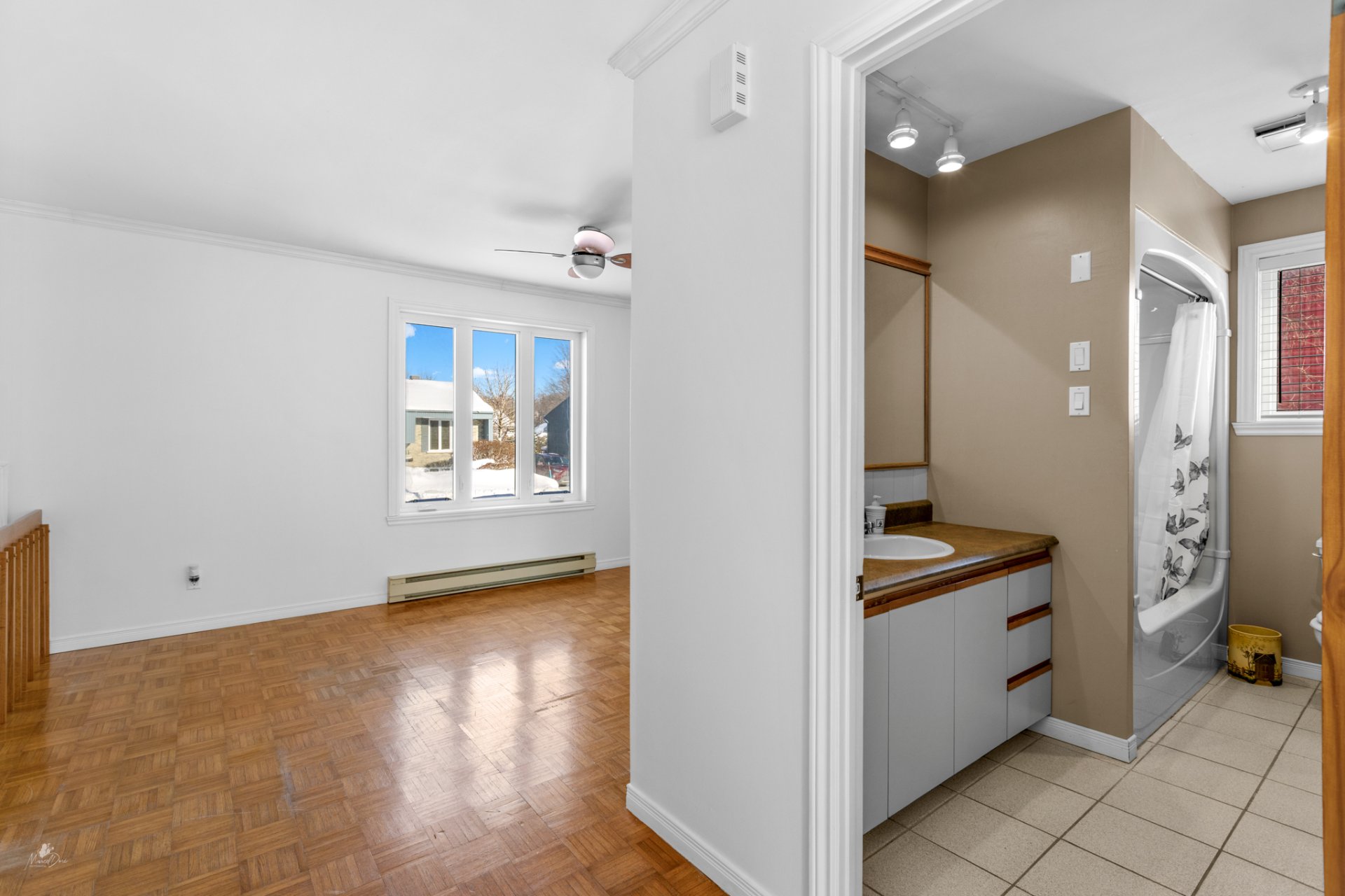 Découvrez ce grand jumelé lumineux, idéal pour une famille ou un premier acheteur, situé à proximité des services essentiels. Le rez-de-chaussée offre un salon accueillant, une cuisine fonctionnelle ouverte sur la salle à manger, une salle de bain complète ainsi qu'une chambre principale avec rallonge polyvalente, parfaite comme bureau en télétravail ou coin lecture, avec plancher chauffant. Le sous-sol propose un boudoir, trois chambres supplémentaires (dont une utilisée comme atelier) et une salle d'eau. À l'extérieur, un cabanon complète le tout sur un grand terrain. Une propriété offrant espace et fonctionnalité, dans un secteur recherché