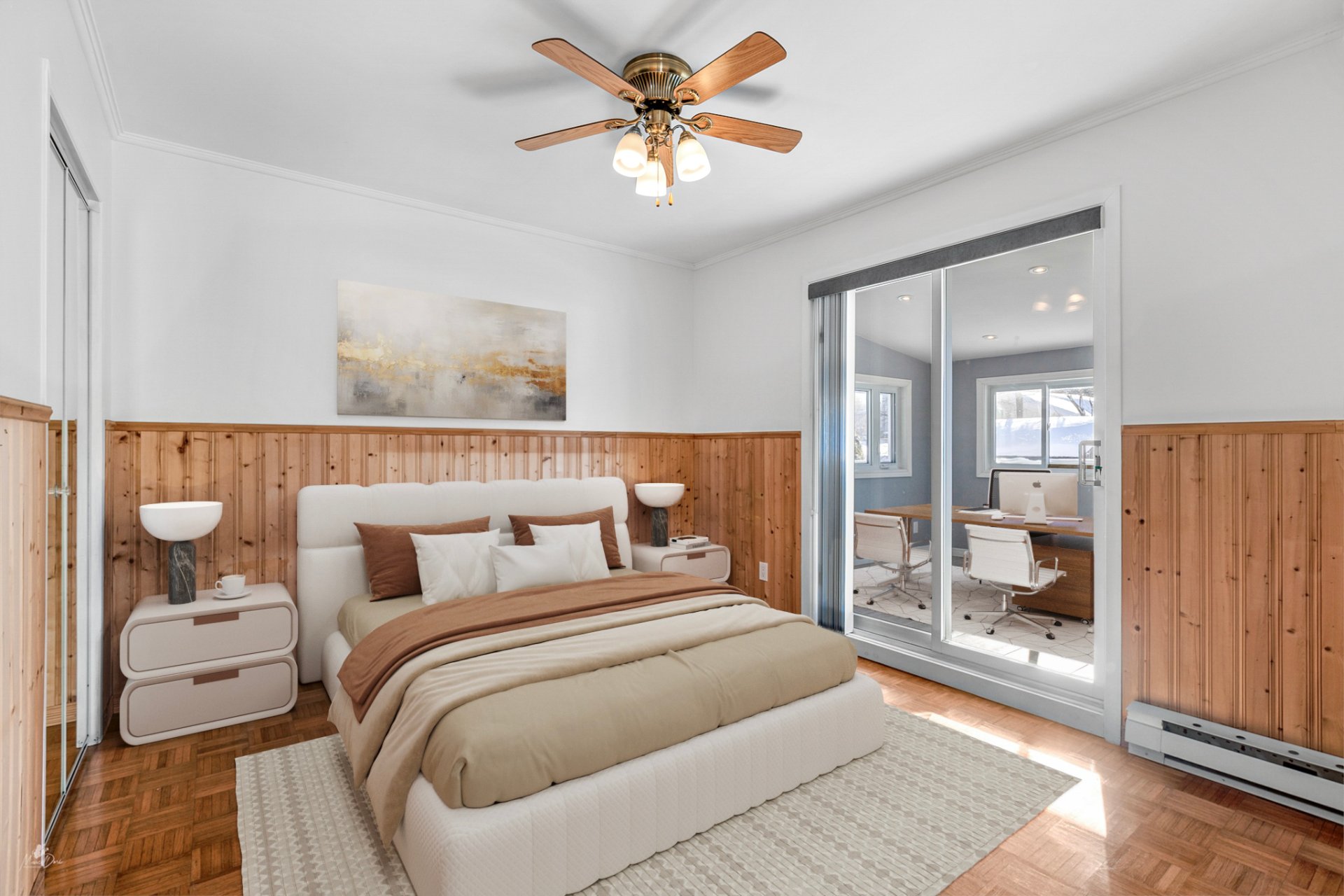 | Chambre à coucher principale | 11.2 x 10.2 P | Rez-de-chaussée | Bois |