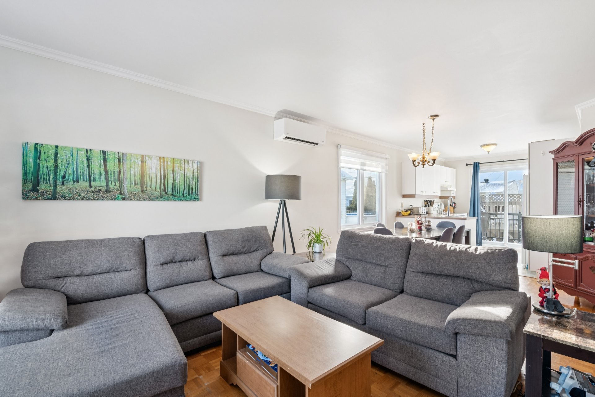 Offrant une aire de vie à concept ouvert baignée de lumière