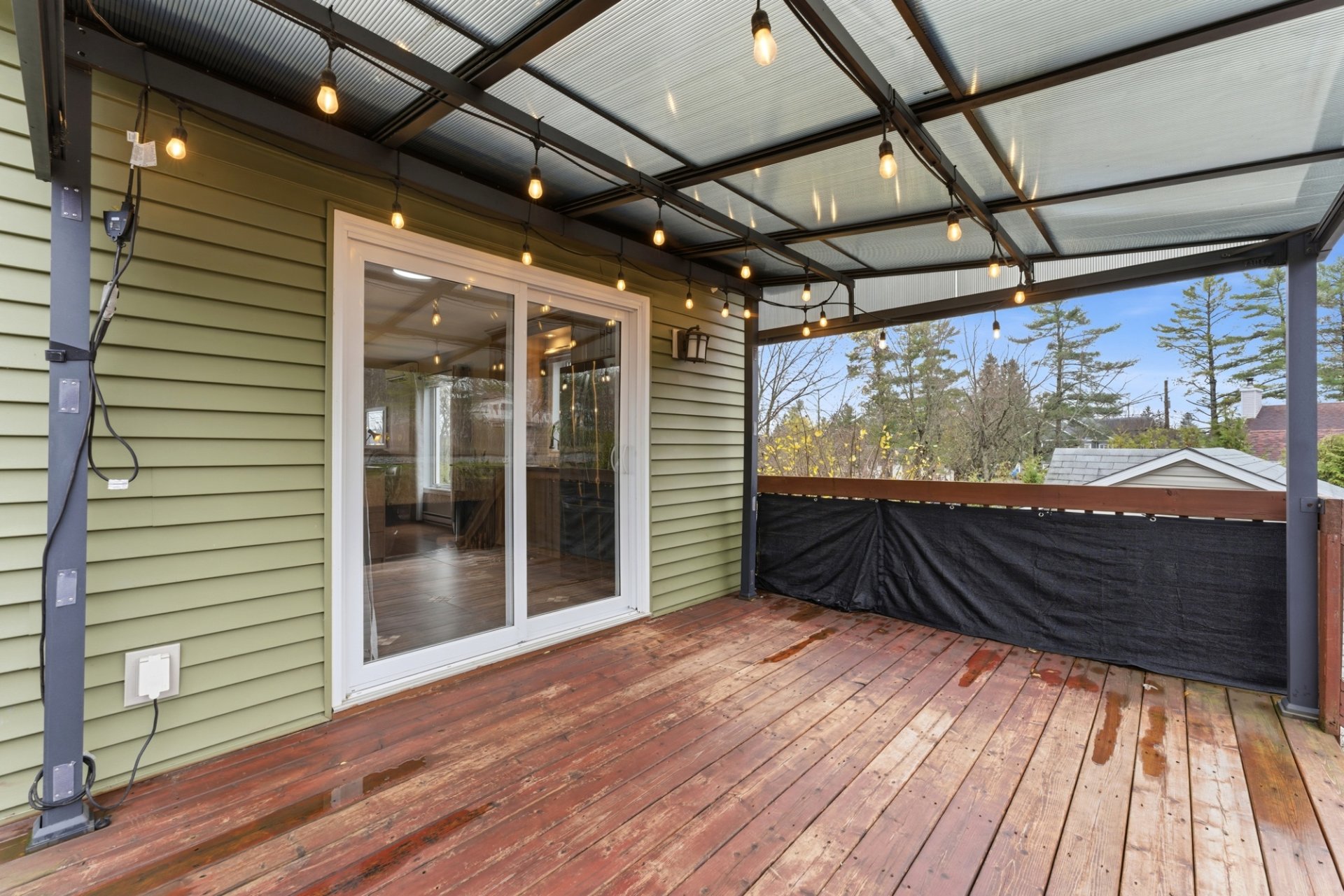 - Terrasse en bois traité fraîchement teintée et protégée