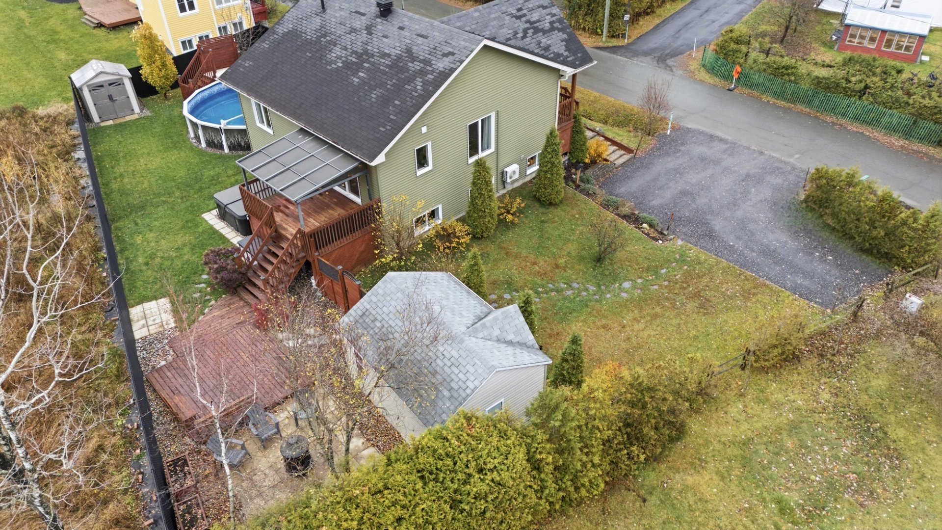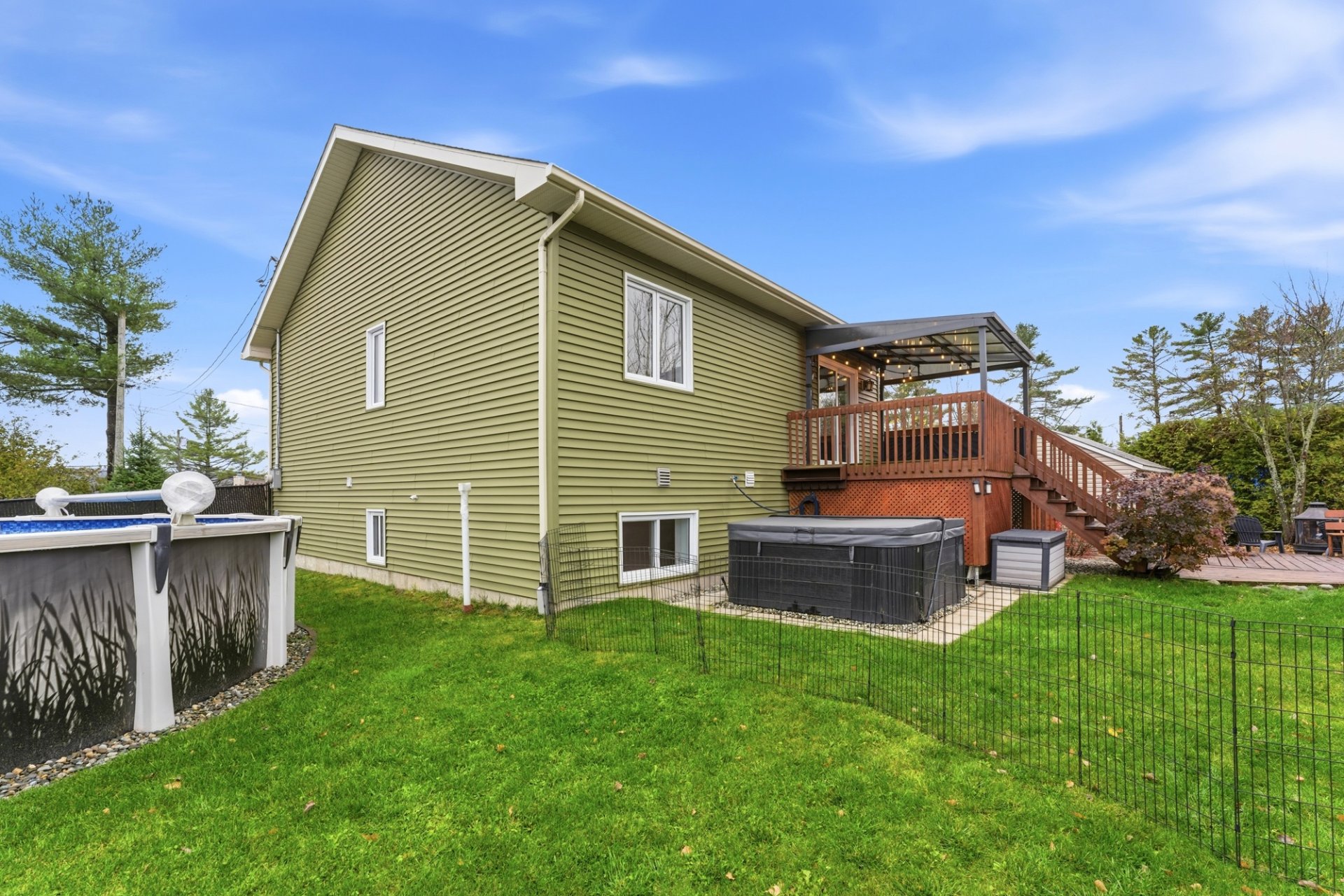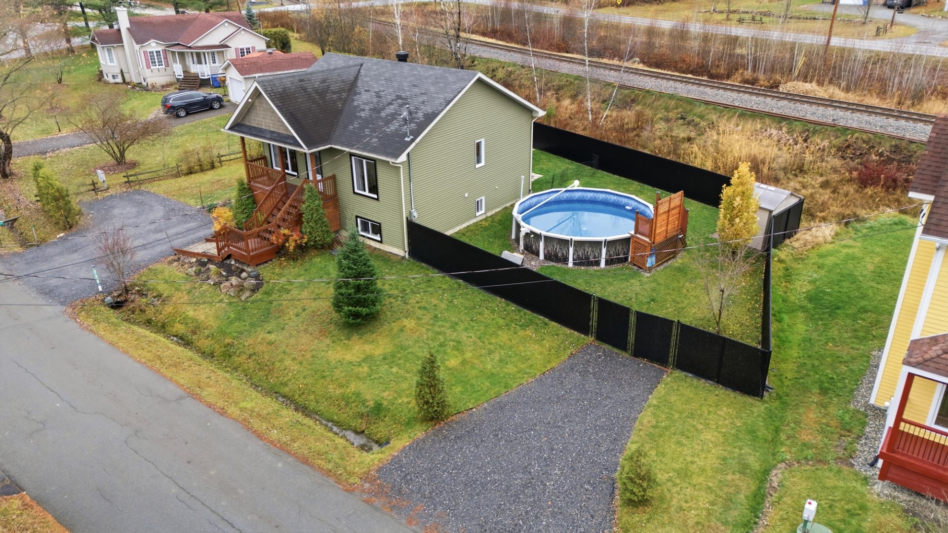 | Inclus | thermopompe murale, échangeur d'air, balayeuse centrale et accessoires, Pôle, Rideaux, Store, toiles, tablettes, toiles électriques du salon, hotte de poêle, luminaires, tablettes chambre enfant, sonnette intelligence, gazebo avec lumières, piscine 21 pi et accessoires, chauffe-eau piscine, remise 12x 16pi(isolé, chauffé avec électricité), cabanon, support de télévision (rdc, sous-sol), Spa et accessoires, |