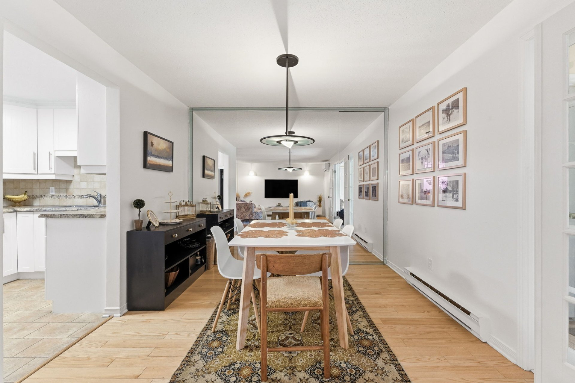 | Exclus | Réfrigérateur, cuisinière, laveuse, sécheuse, rideaux, meuble blanc (armoire/étagère) dans la chambre des maîtres, 2 luminaires suspendus dans le salon. |