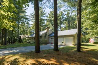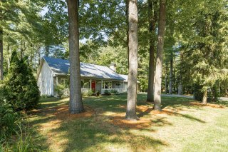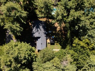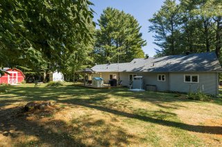 cour arrière est privée et bordée d'arbres, avec deux