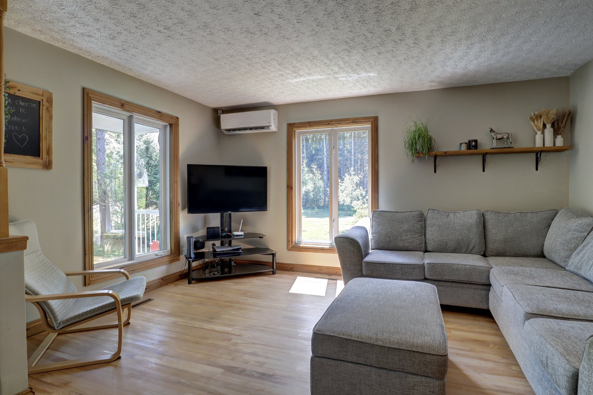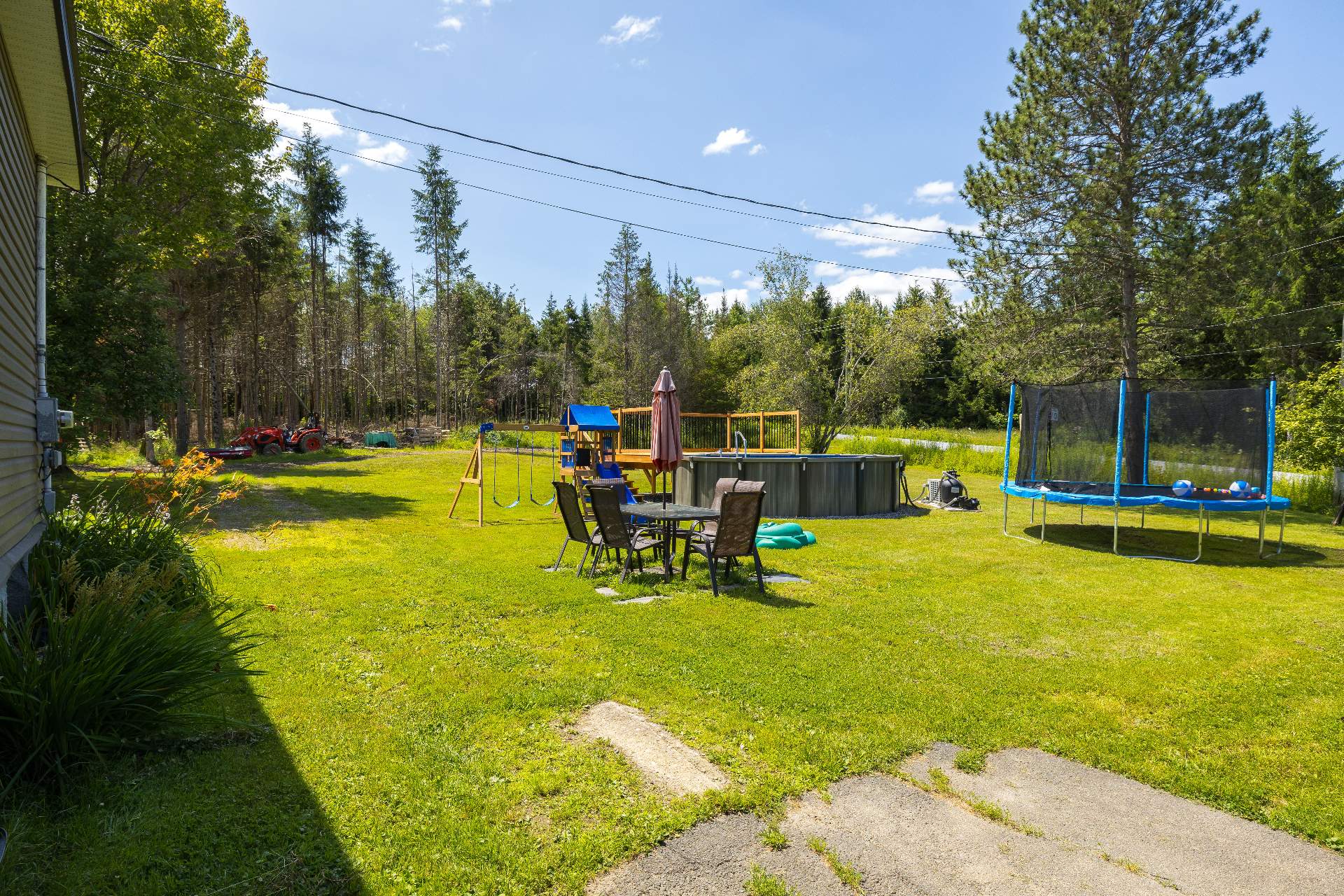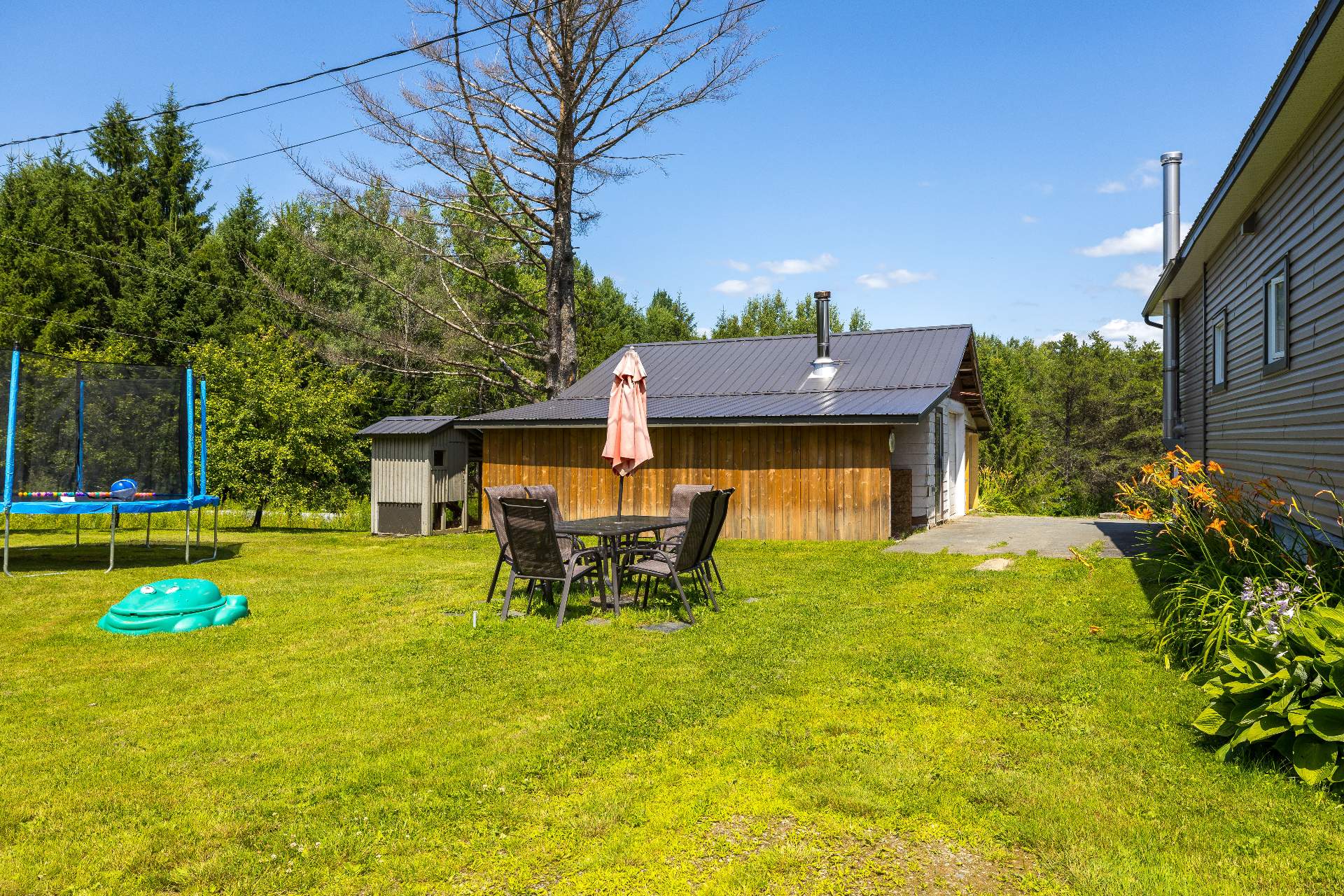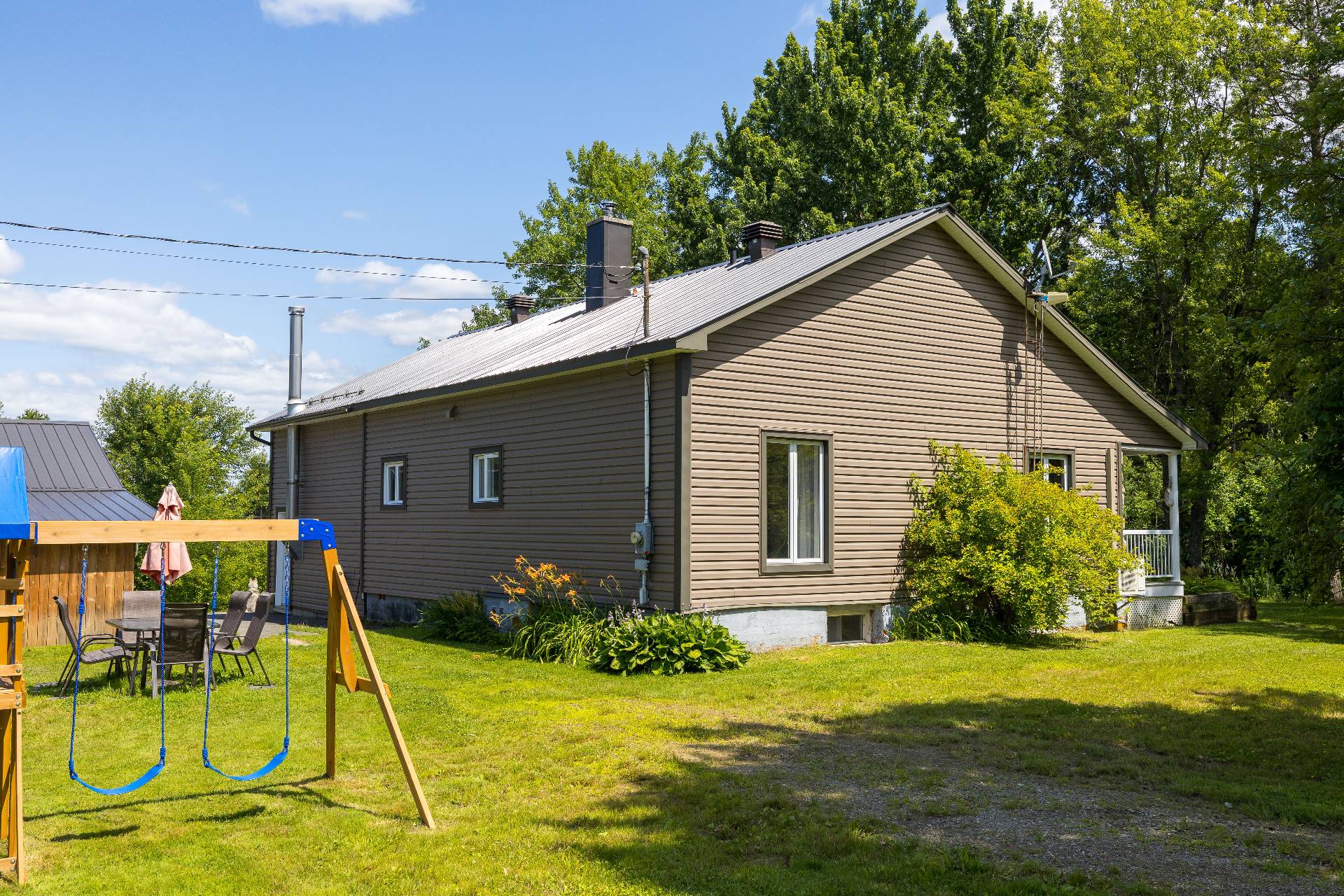 Inclus | Aspirateur central et acc., luminaires, stores, lave-vaisselle (vendu tel quel), thermopompe, portes dans le sous-sol (3), ouvres-porte de garage (2), poulailler, système d'alarme (non fonctionnel). |