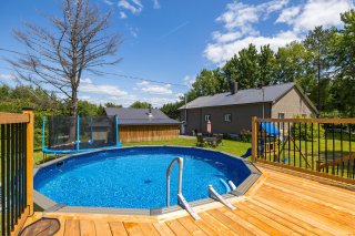 Maison super bien entretenue et abordable. Elle a tout pour plaire à votre famille avec ses grandes pièces et son grand terrain. 3 chambres et un bureau (pourrait être. une 4e chambre), sous-sol à aménager selon vos goûts. 2 garages et 2 terrains. Piscine récente chauffée et terrain boisé avec des grands arbres matures.