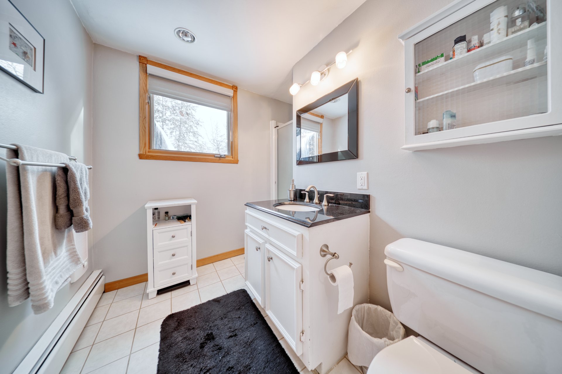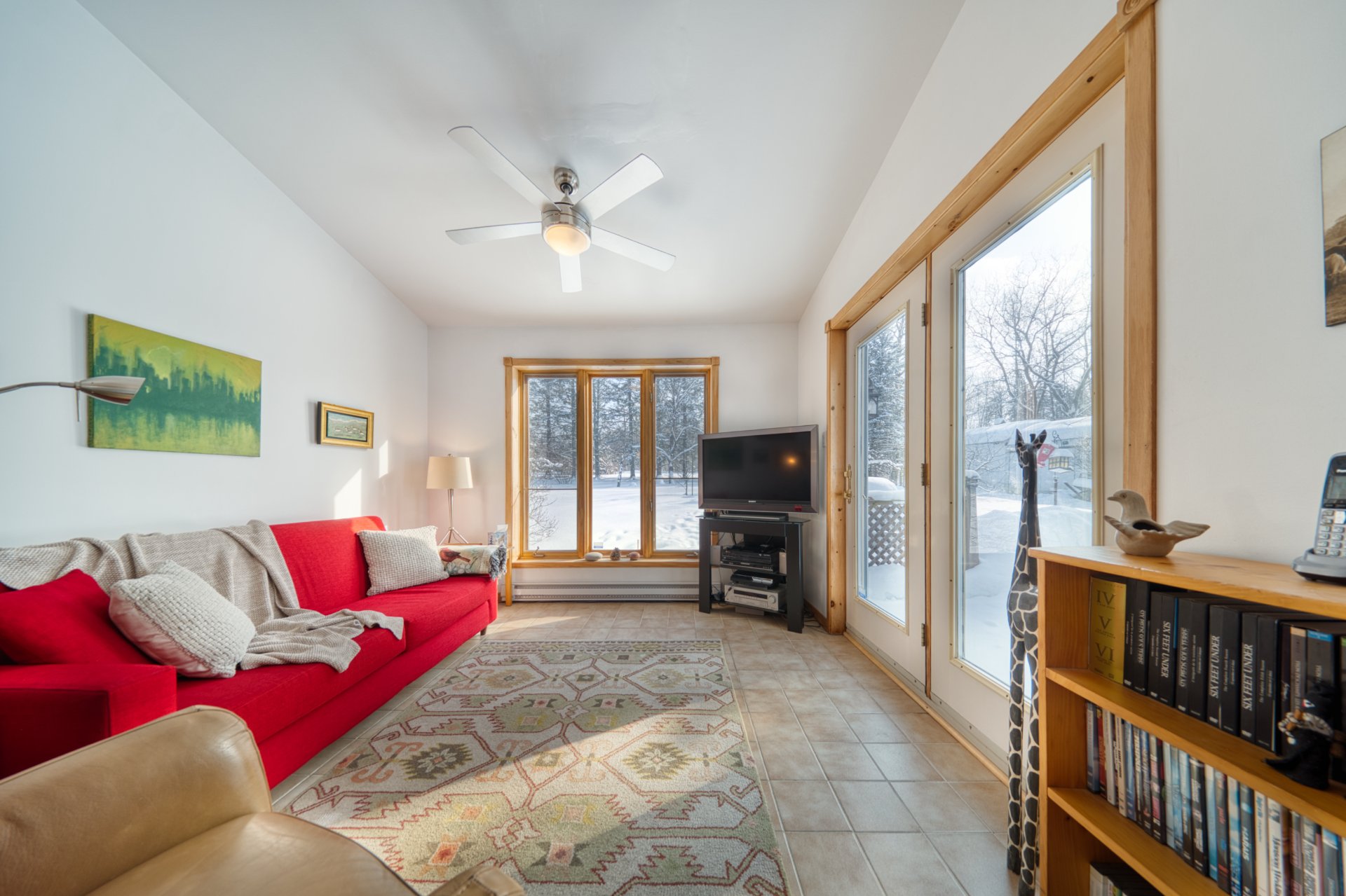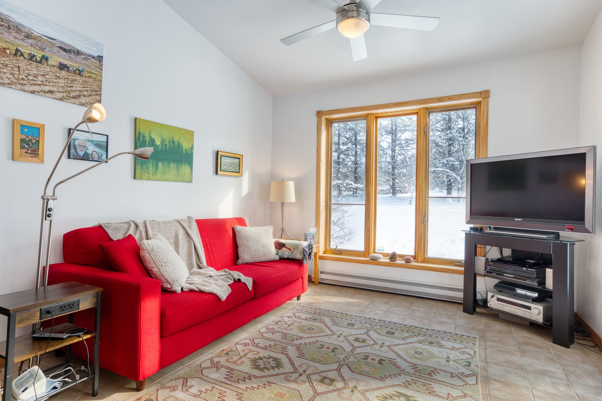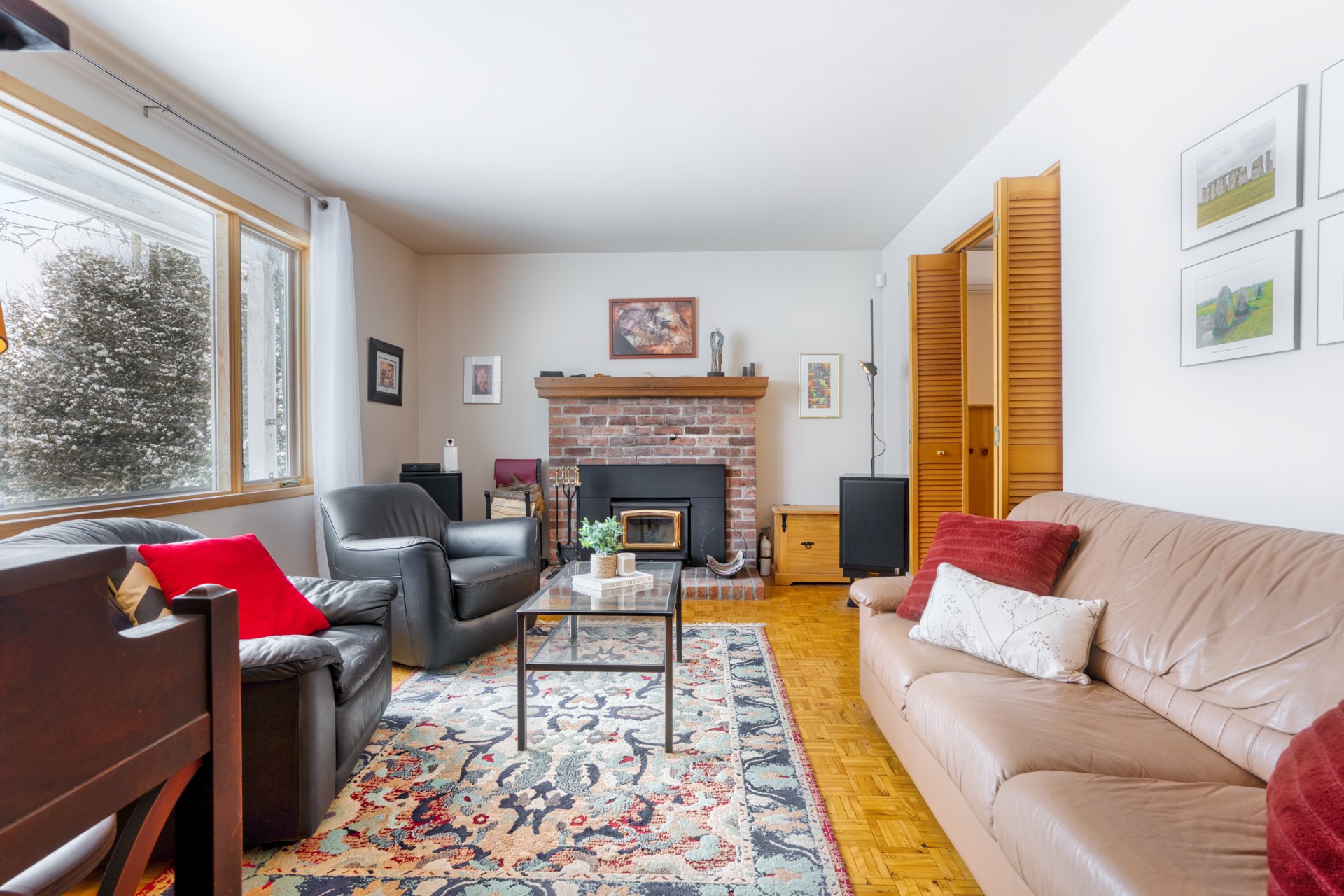 ainsi que 2 salles de bain complètes. Le salon avec foyer