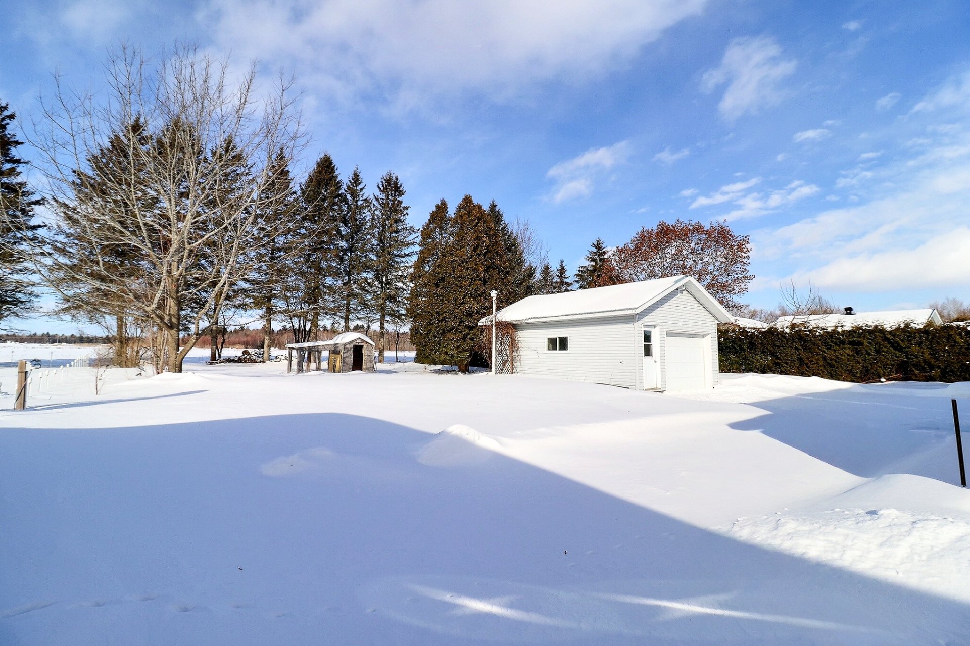 La propriété comprend trois chambres à coucher, un garage