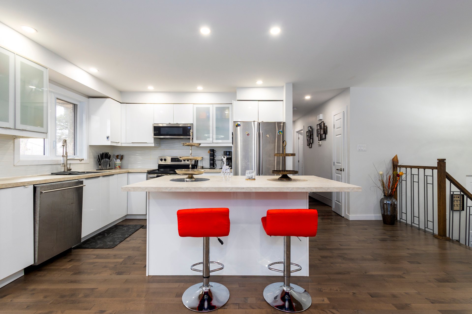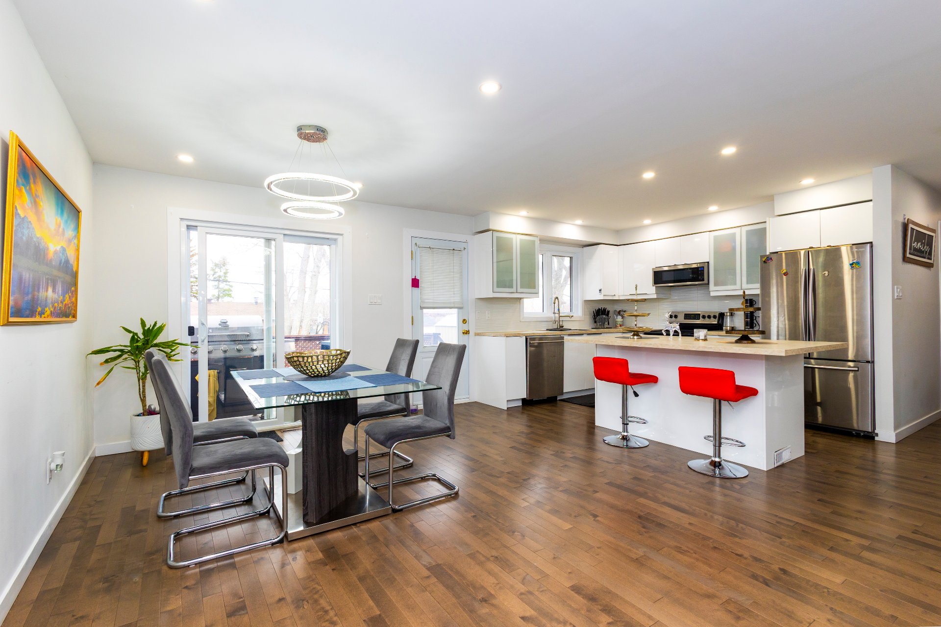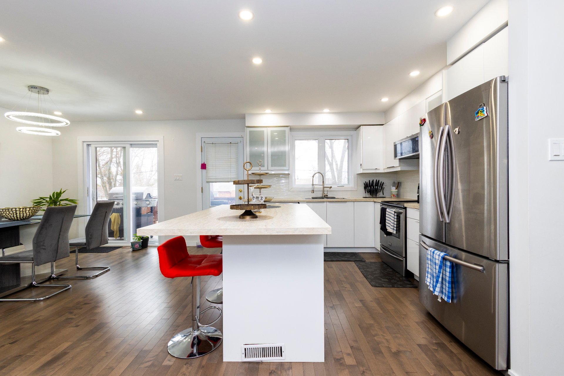 Spectaculaire bungalow rénové au coeur de Pierrefonds Ouest! Offrant 3+1 chambres, 2 salles de bain complètes, un vaste espace à aire ouverte avec cuisine Decormag blanche, immense îlot, éclairage encastré et salles de bain zen. Profitez d'une salle familiale moderne avec planchers neufs, escalier design et garage. Situé dans une rue paisible, à proximité d'écoles réputées, parcs, piscine, tennis, commerces et transport. Un véritable coup de coeur! À voir absolument!