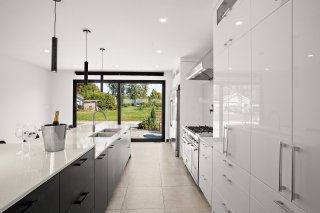 salle à manger élégante et une cuisine de chef, équipée