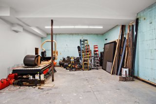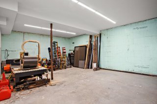 cet énorme garage, équipé de planchers chauffants, est un