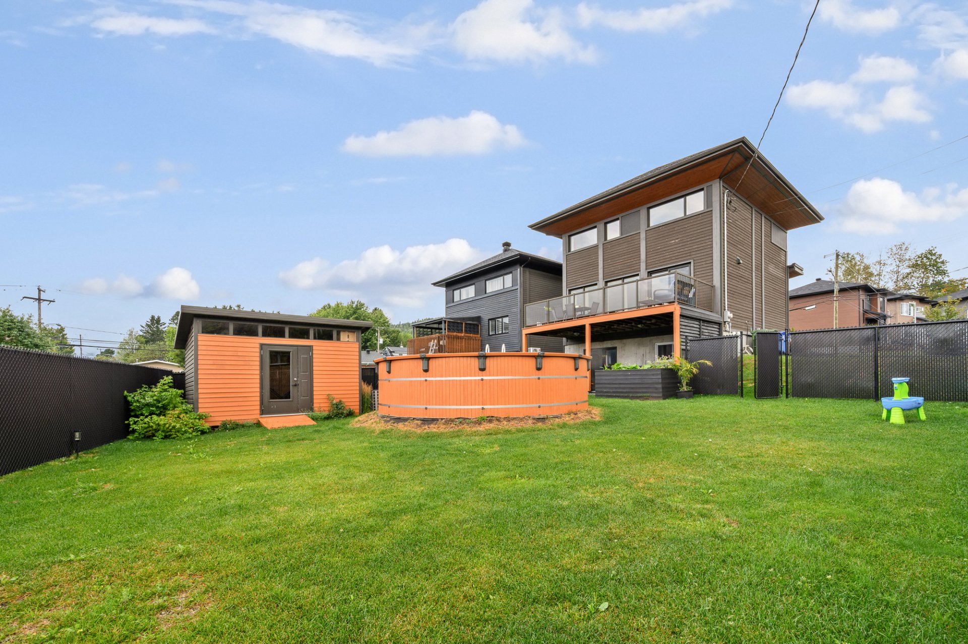 Inclus Luminaires, habillage de fenêtres, thermopompe mural, échangeur d'air, piscine hors terre et ses accessoires, thermopompe de la piscine