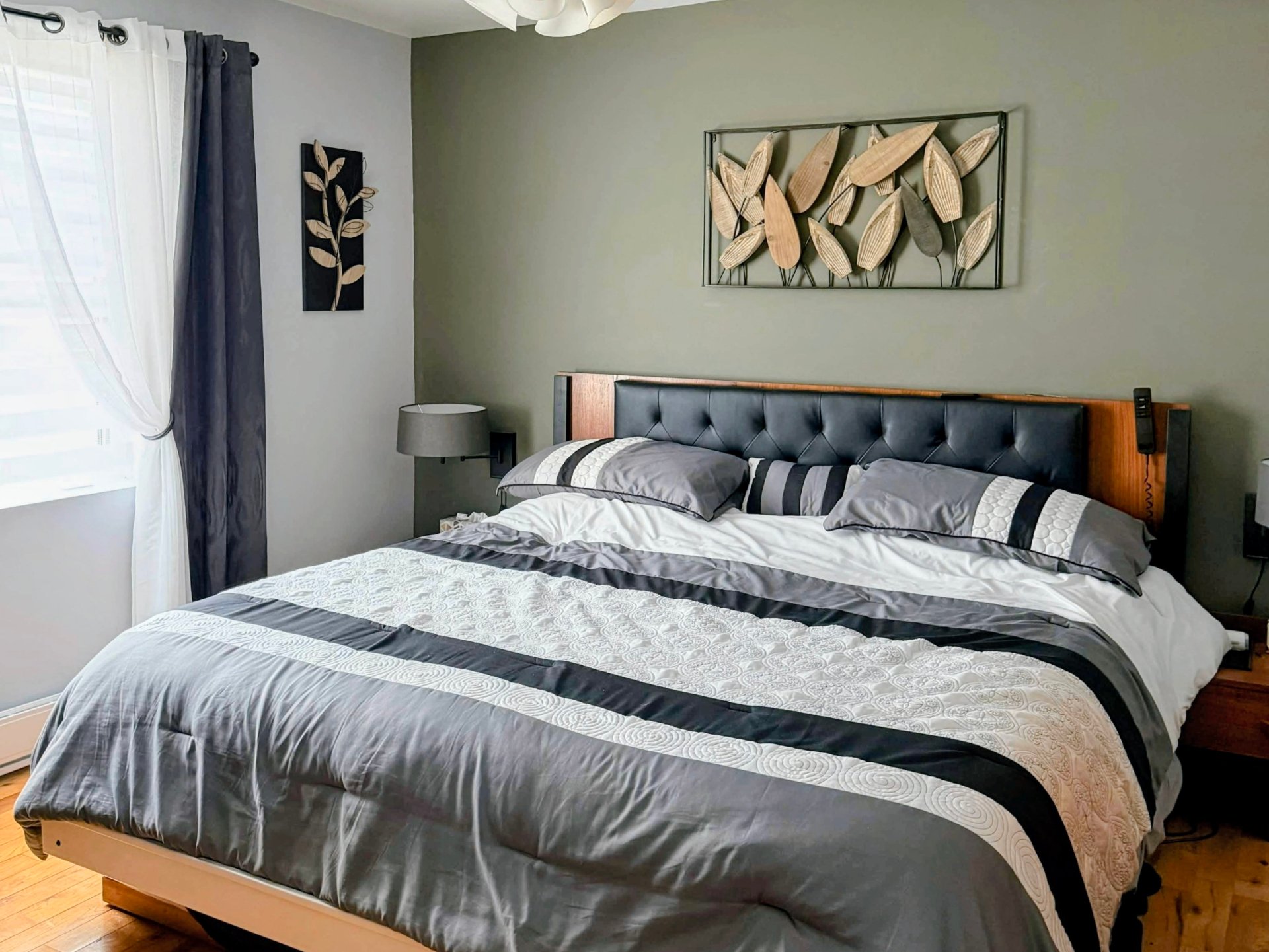 | Chambre à coucher principale | 12 x 12 P | Rez-de-chaussée | Bois |