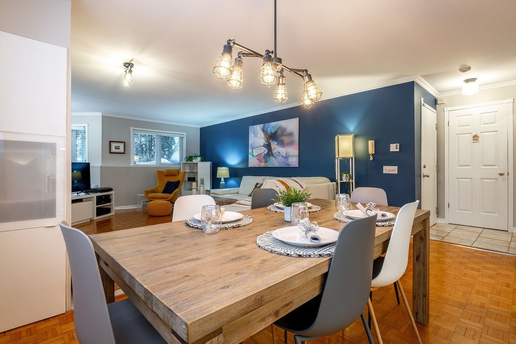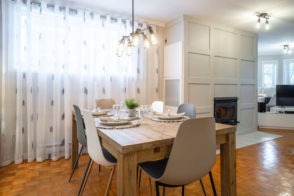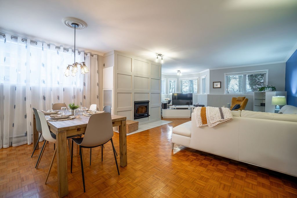 harmonieusement à la salle à manger et à la cuisine. Ce