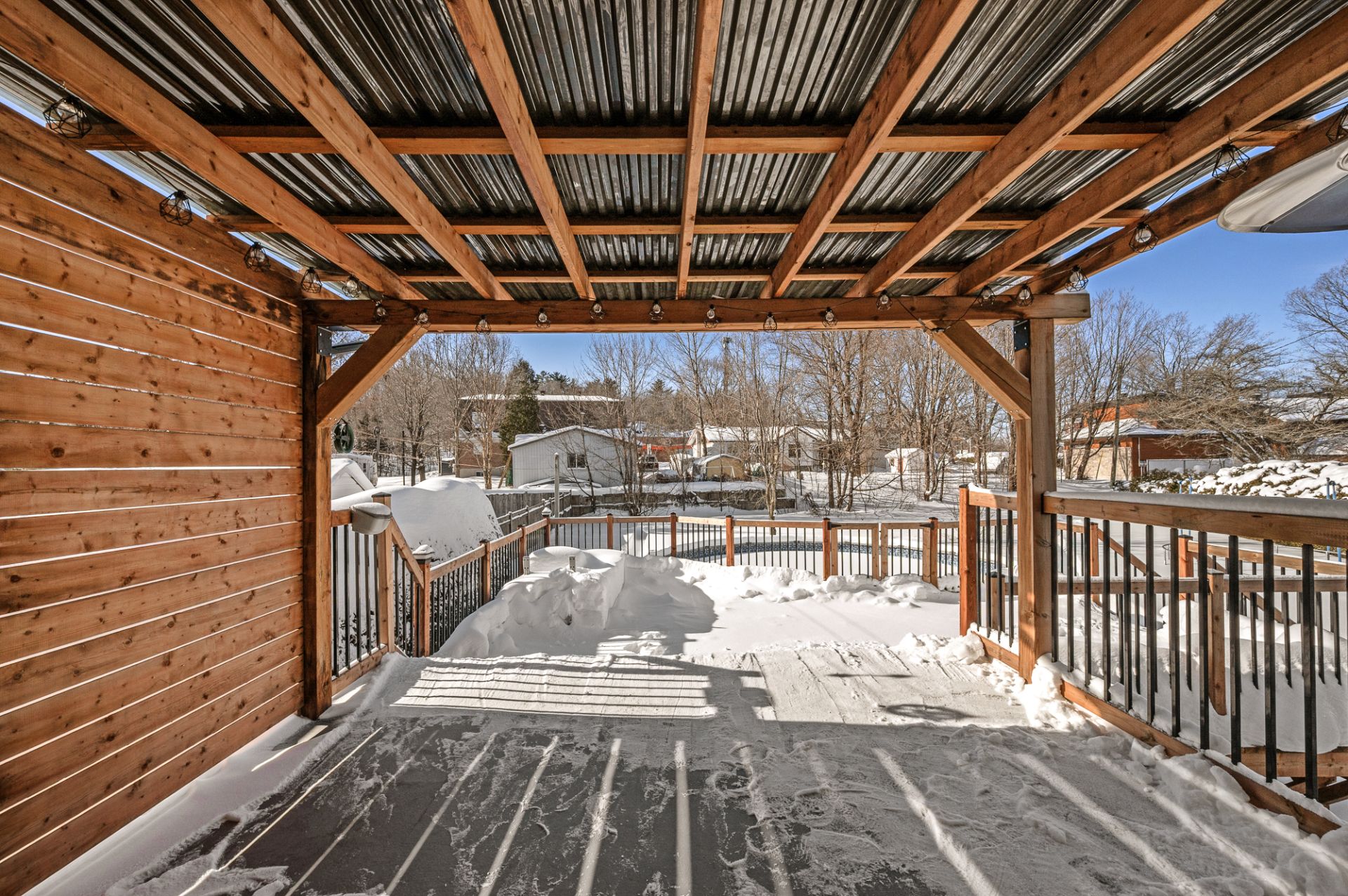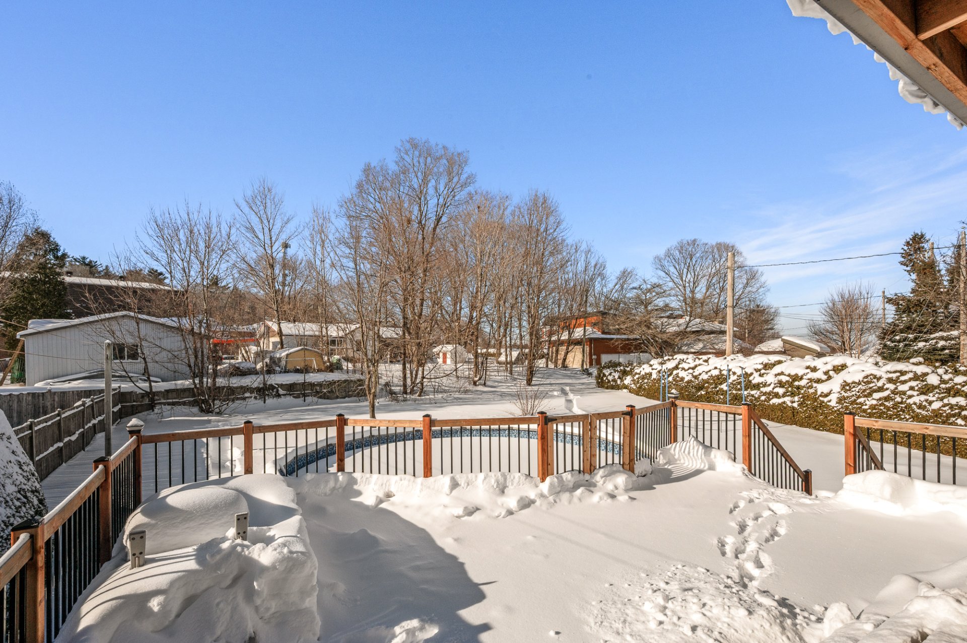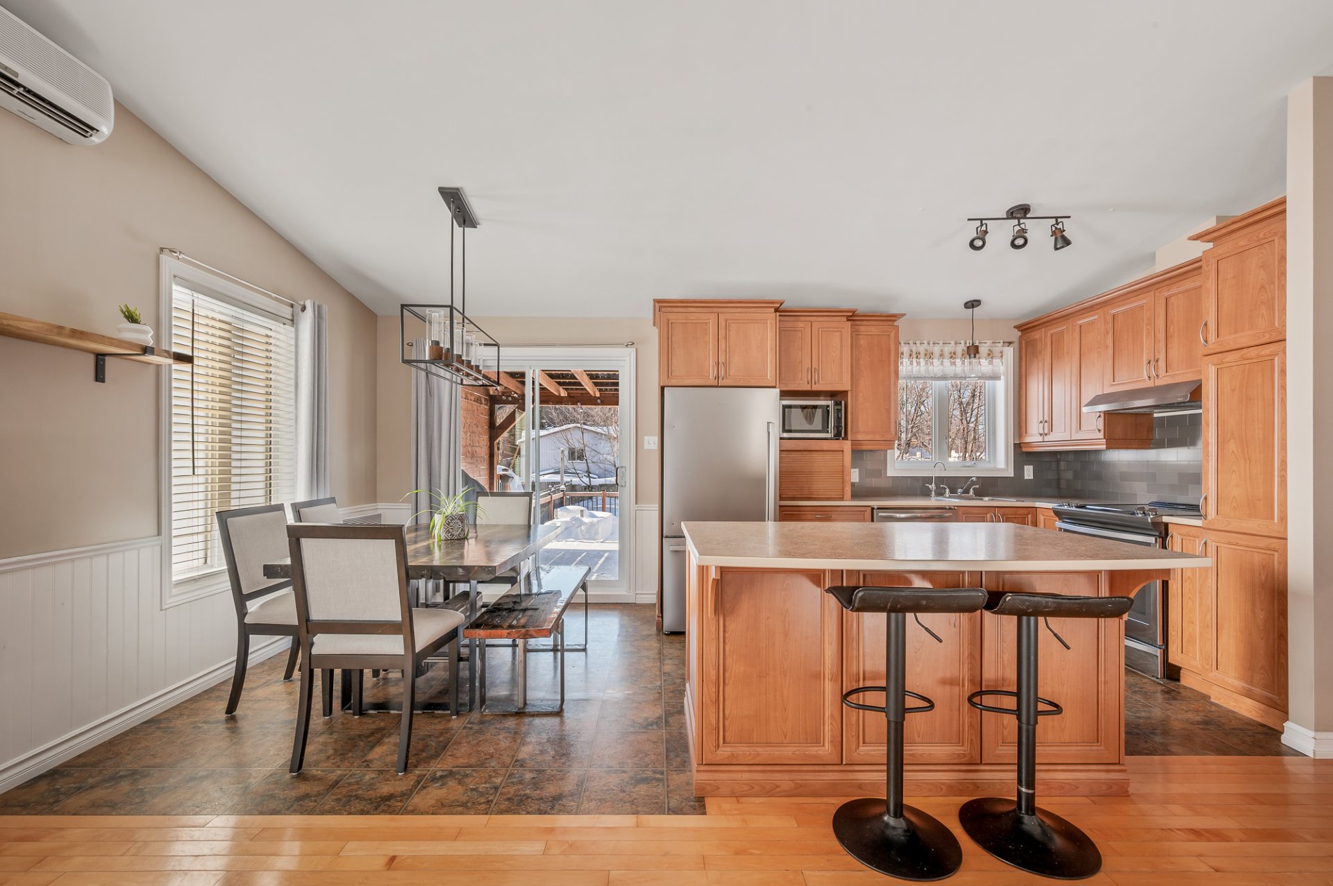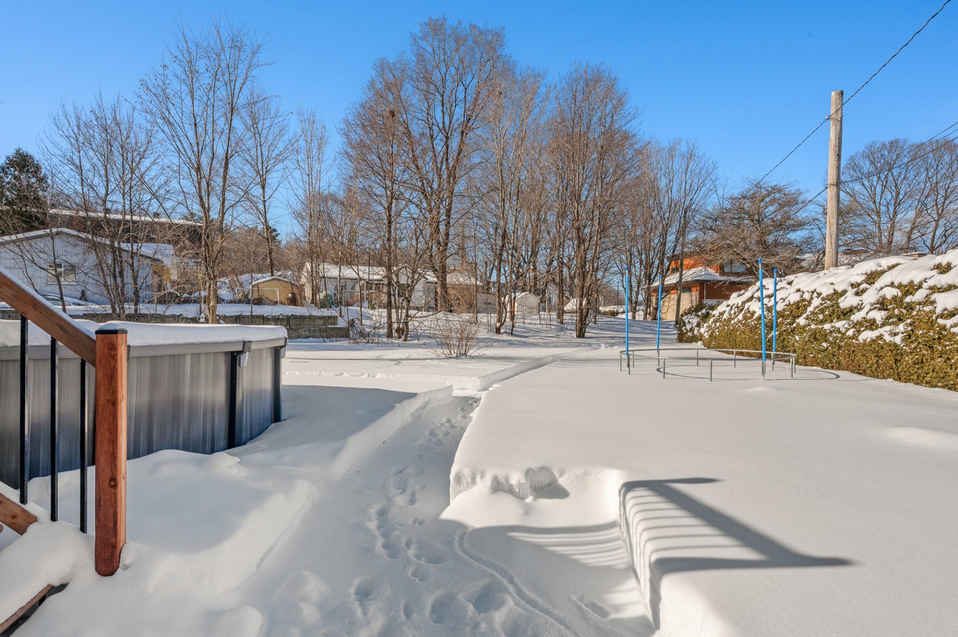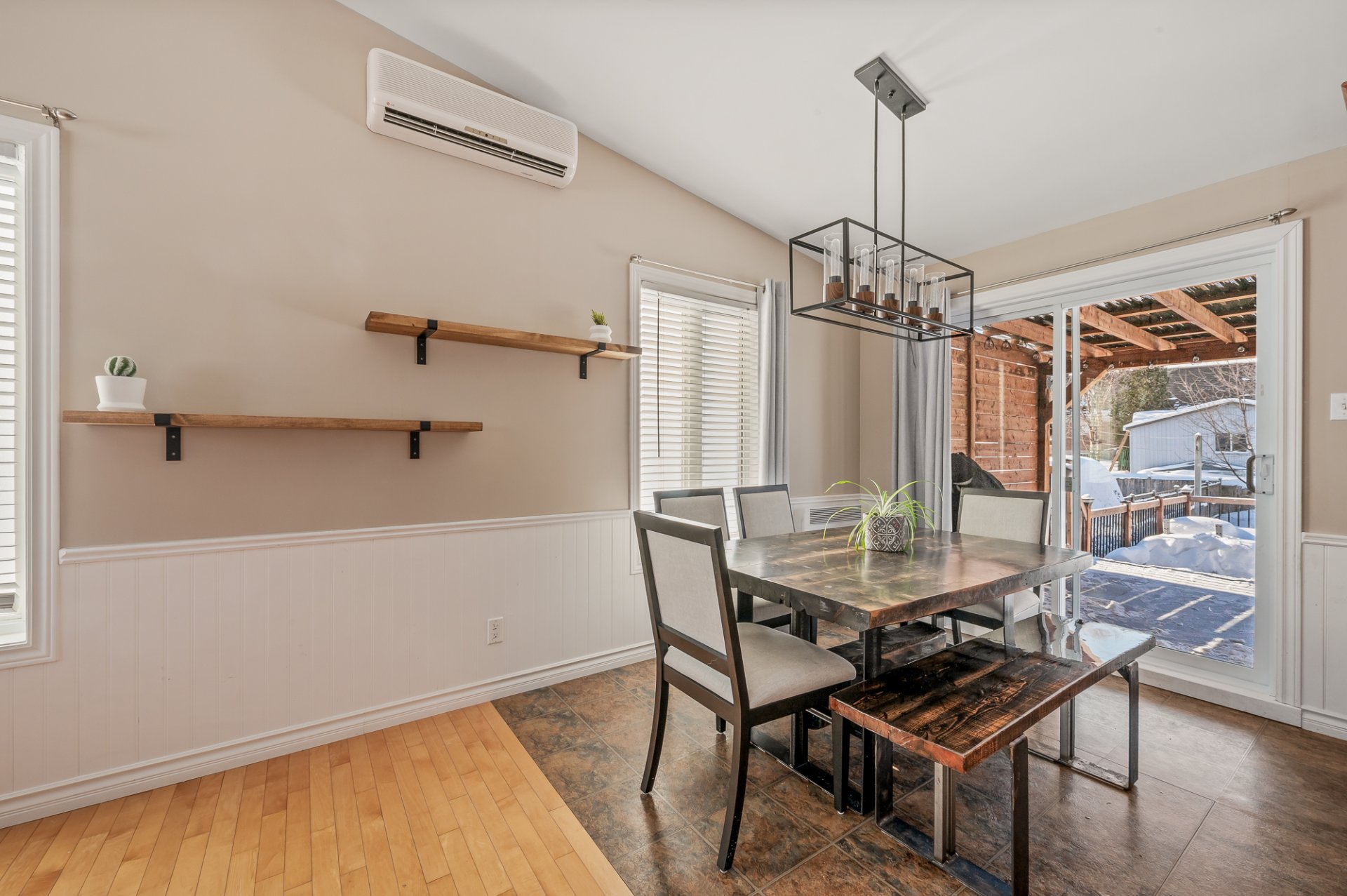 Inclus Luminaires, habillage de fenêtres, thermopompe murale, échangeur d'air, tablettes dans la salle à manger, piscine hors terre, thermopompe piscine, tablettes dans les chambres
