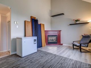 Inclus | Thermopompe murale, échangeur d'air, luminaires, tablettes au dessus du foyer, foyer au propane. |